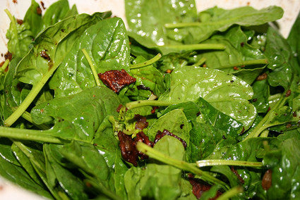 Aged Maple Balsamic-Bacon Vinaigrette over Wilted Baby Spinach