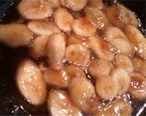 Slice the bananas on the diagonal. Heat the oil in a skillet until hot but not smoking. Add the bananas and saute’ until lightly browned. Drizzle the balsamic over the bananas and toss, browning a little more. Serve hot!